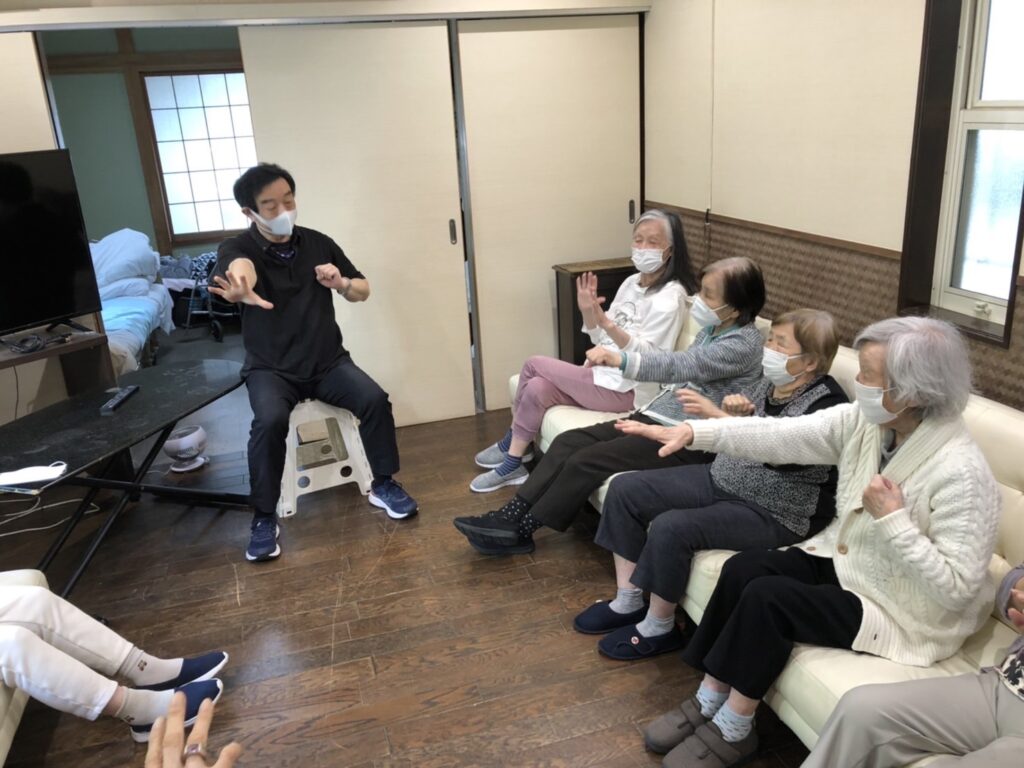 指の運動、足の運動、口腔体操から顔の筋肉をほぐしたり・・・・