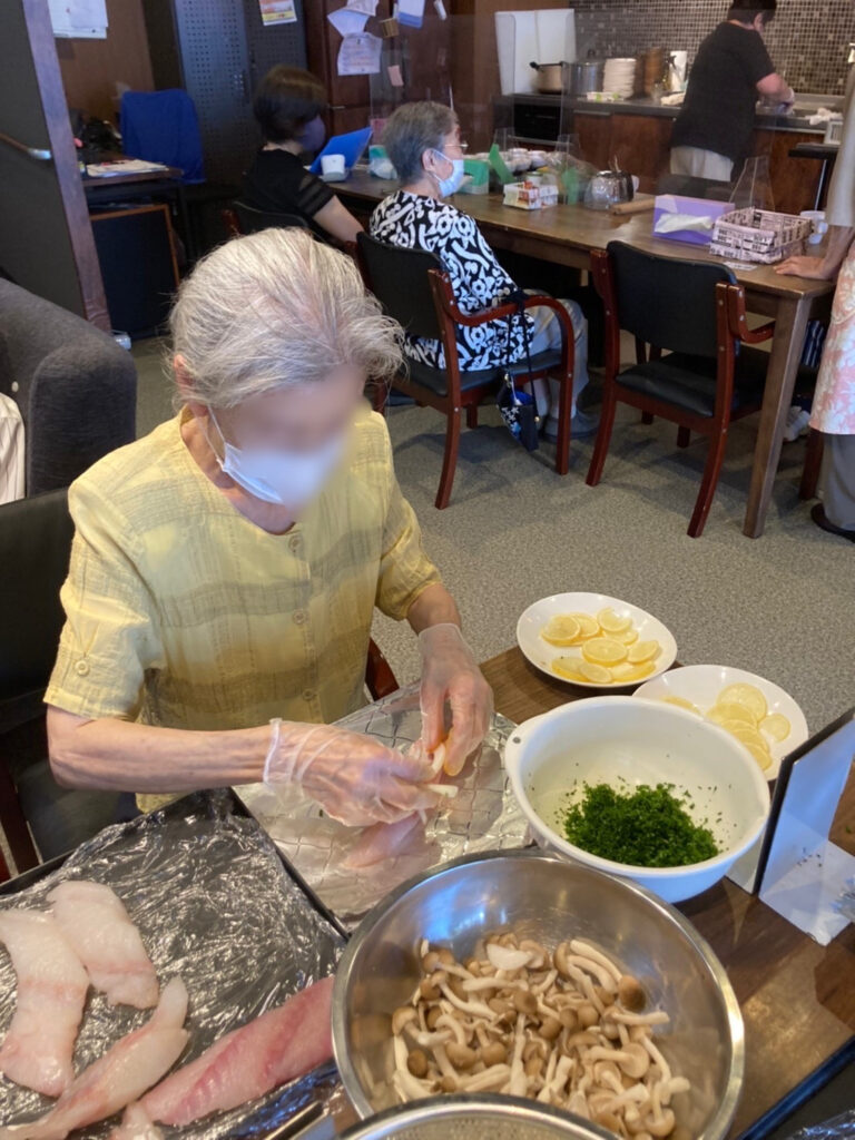 シェフが施設まで来て、本格的な料理を作るレクを行っています。