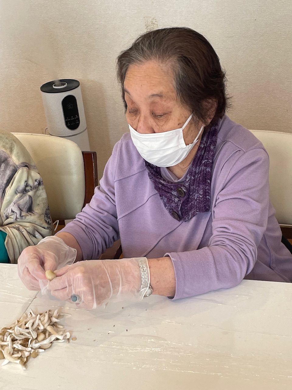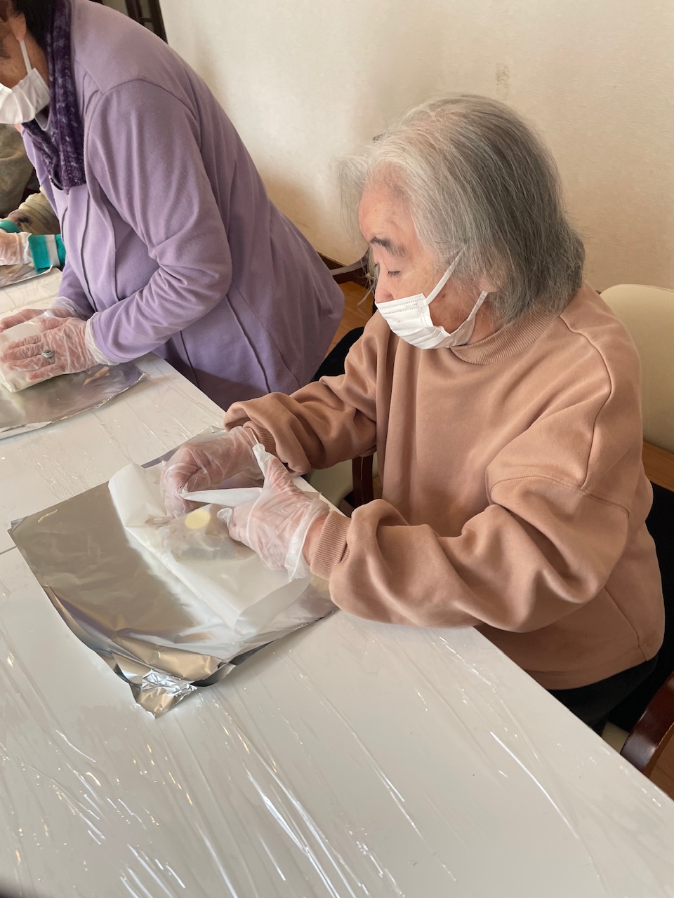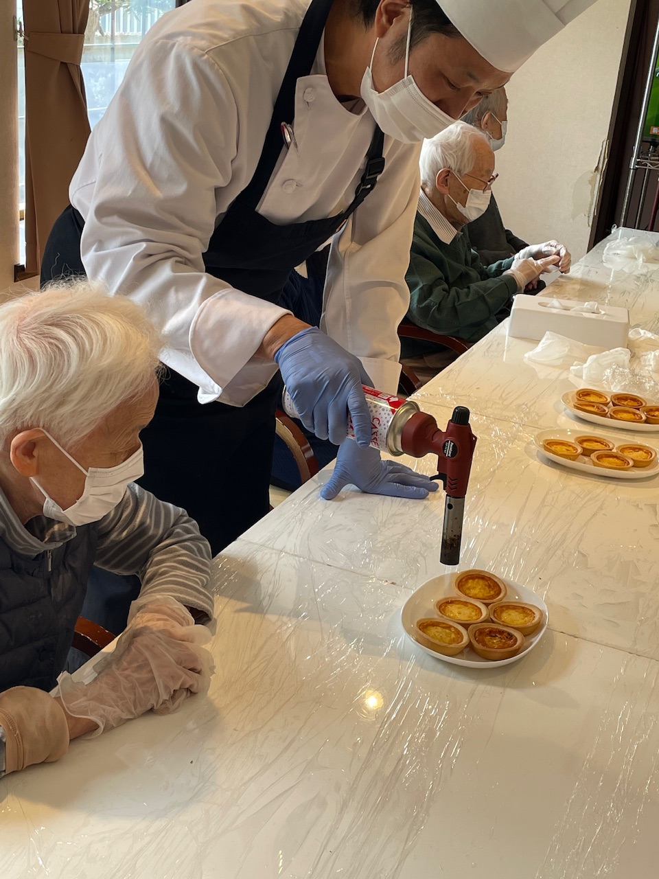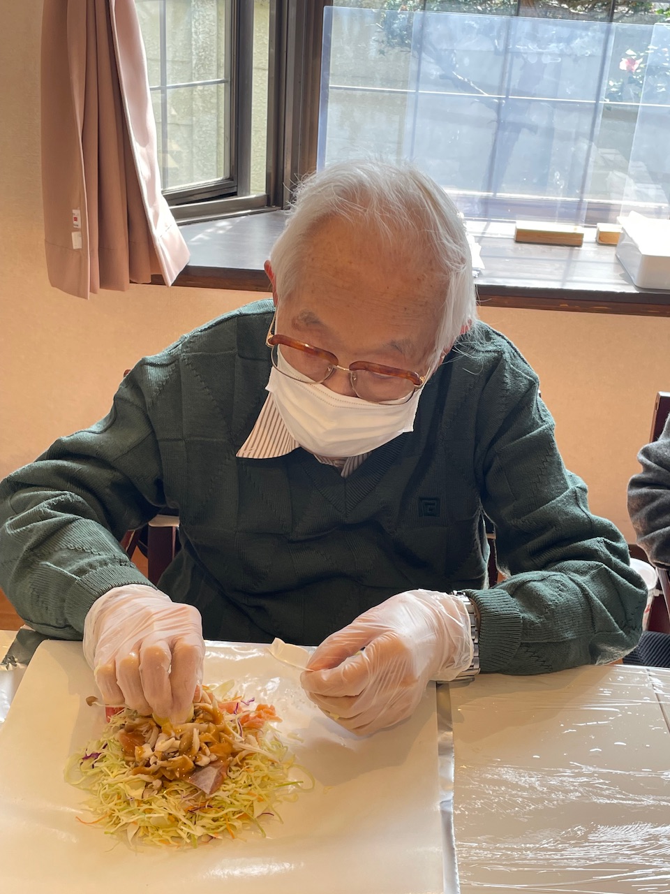 鶏肉にタレを絡めて部屋中美味しい香りがして、皆さんワクワクしながら待ちきれない様子でした。
