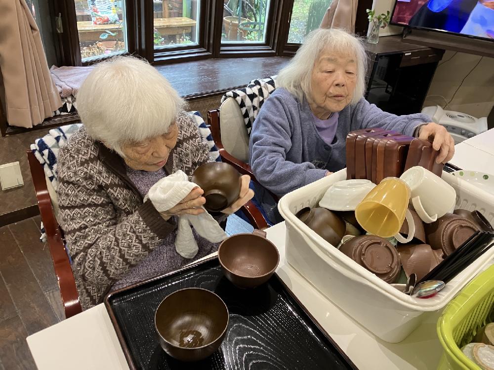 食事が終わったあとは、食器拭きなどの片付けも手伝っていただきました。