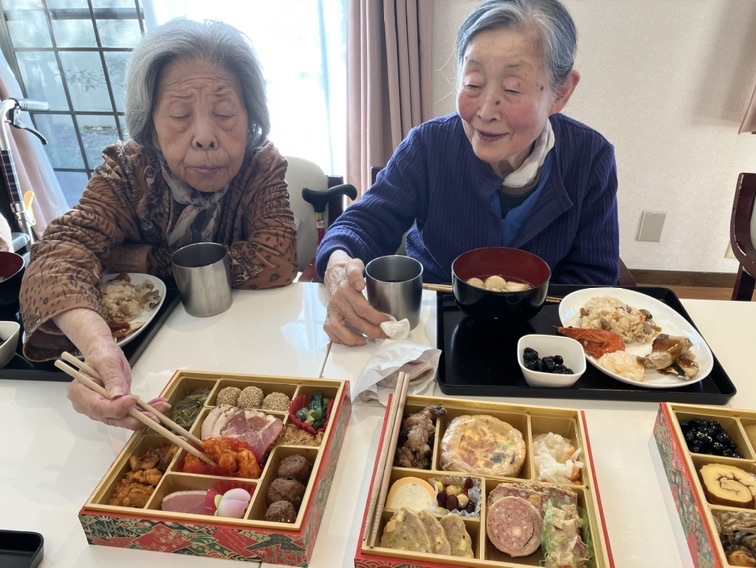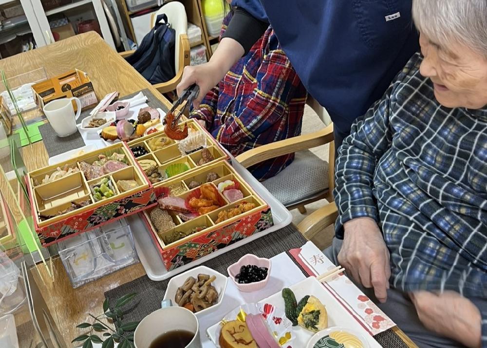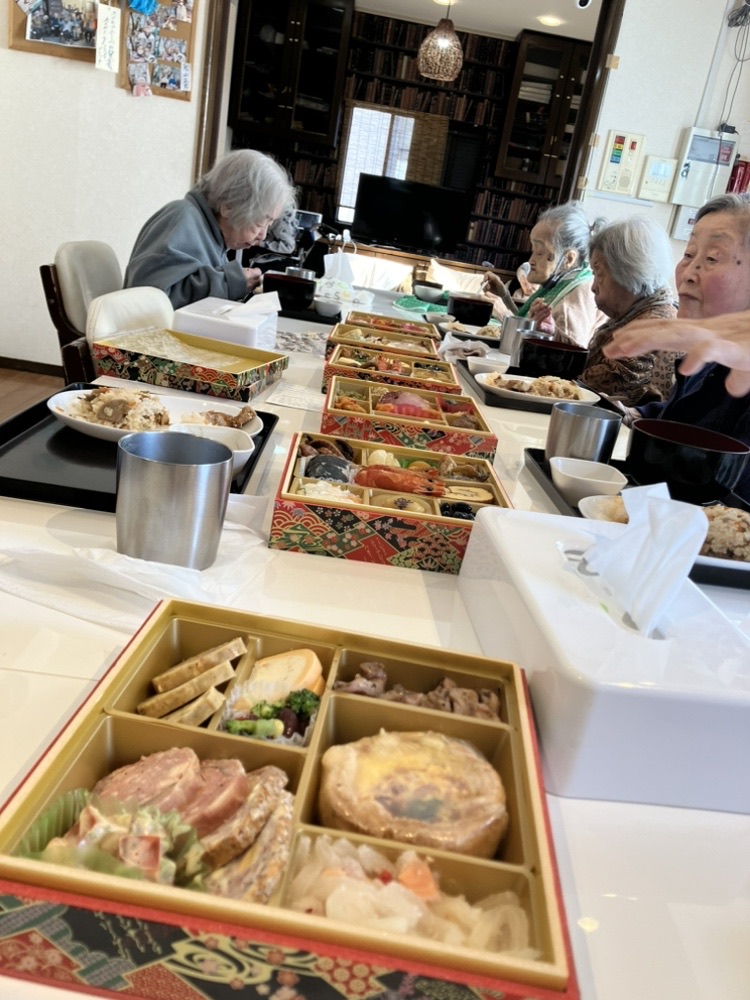 お昼は施設でご用意させていただいたお節をお召し上がりになり