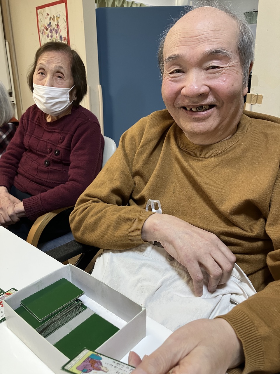 実は月に一度ほどボランティアで来てくださるゲームプランナーさんによる俳句かるたレクリエーションなのです!!