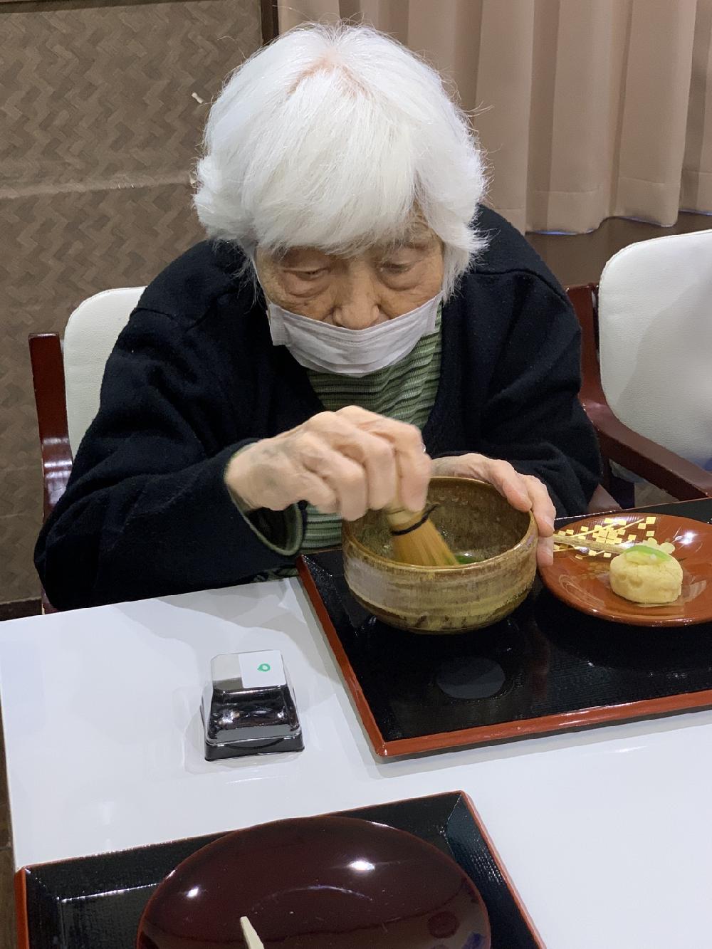 1/13に開催された和菓子とお抹茶レクは、不定期開催ですが皆様から大変好評いただいているレクリェーションの一つです。